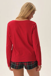 Comment rendre l’attente de l’Avent plus douce ? Le pyjama Feli réunit tout ce qu’il faut pour patienter jusqu’aux fêtes : une coupe confortable, une teinte chaleureuse et ce petit clin d’œil joyeux qui annonce Noël. Sur le haut, un message festif accompagné de cinq flocons de neige pour poser l’ambiance — sur le bas, un short à carreaux orné de petits boutons pour un charme classique et cosy.